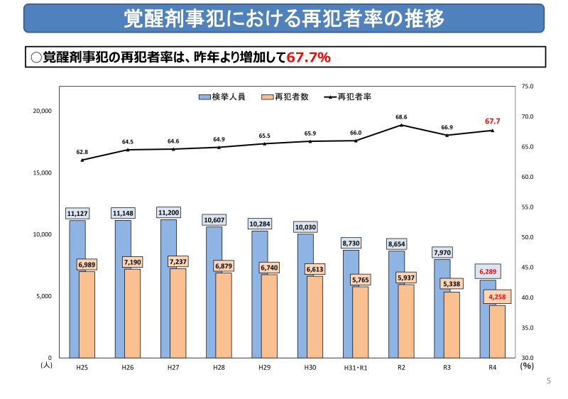 そして、覚醒剤の再犯率は67.7%にも上ります。